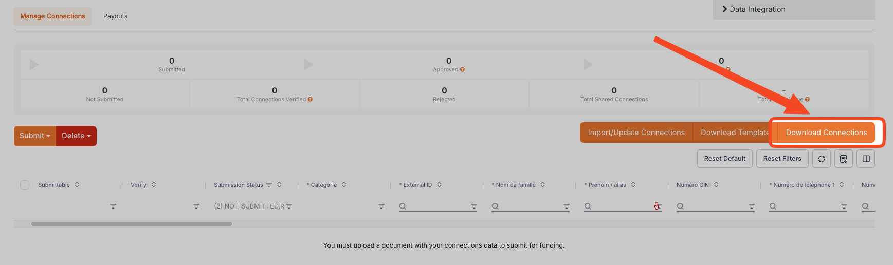Accédez à la section Connections du projet approuvé